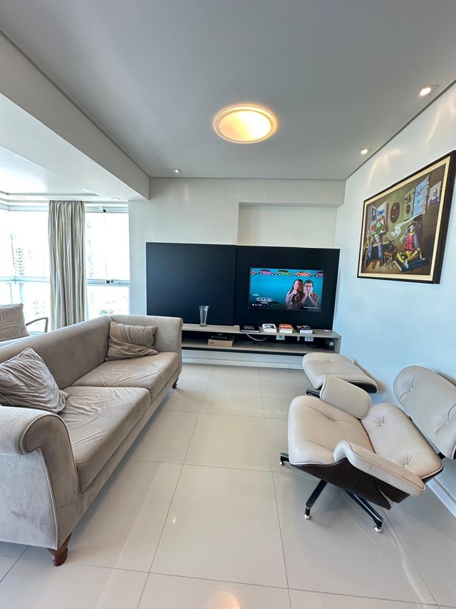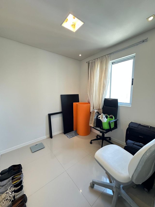 O apartamento conta com 95m² dividido em 2 quartos sendo uma suíte integrada com escritório, WC social, sala para 2 ambientes, cozinha, varanda integrada, área de serviço e duas vagas de garagem.